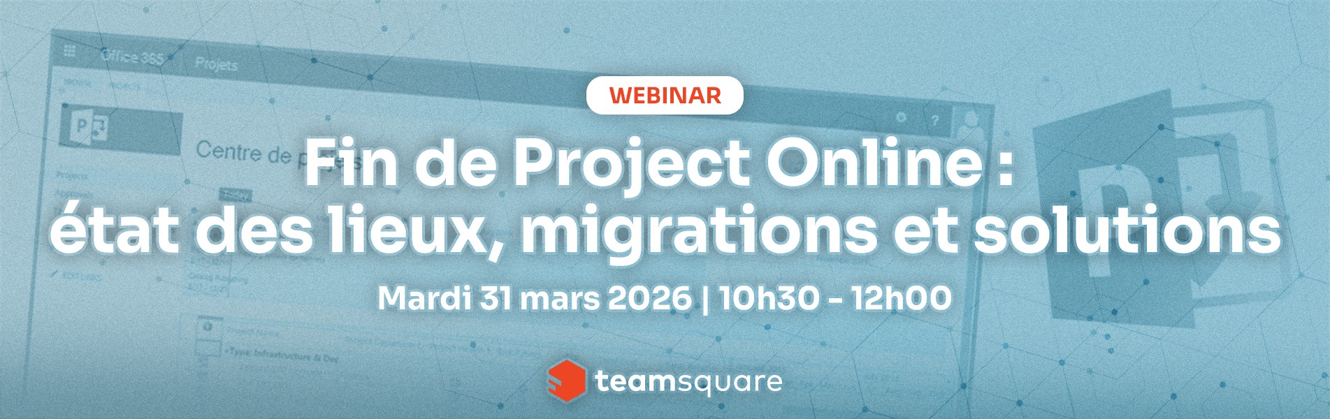 Mais alors, qu’en est-il aujourd’hui, à seulement 6 mois de la fin de Project Online ? Pour le découvrir, nous vous proposons ce nouveau webinar, mardi 31 mars à 10h30. L’occasion d’établir un décryptage de la situation, une analyse des migrations et de découvrir les outils développés par Teamsquare pour vous accompagner dans cette transition et qu’elle s’effectue le plus sereinement possible.