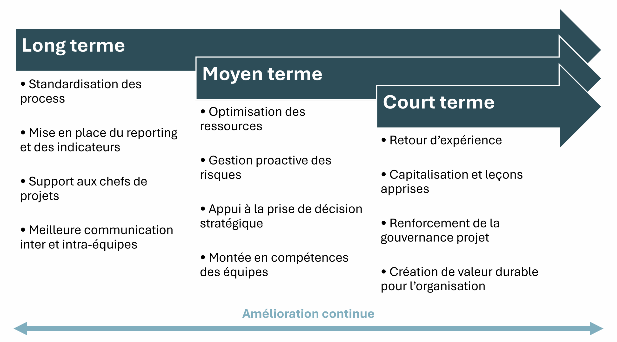 Le PMO crée une valeur mesurable sur plusieurs axes clés :
