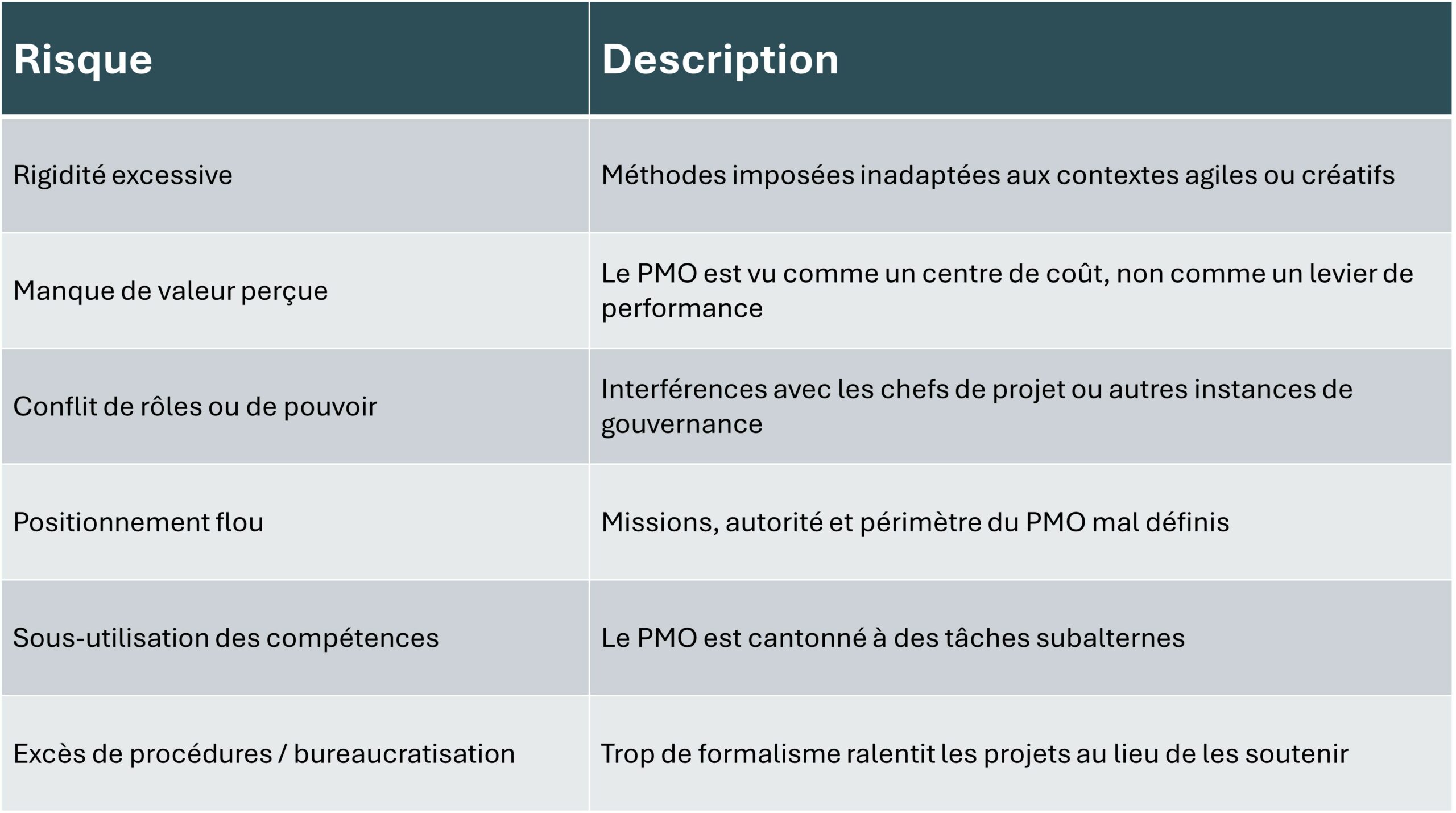 Sans PMO, les organisations s’exposent à des dysfonctionnements structurels : travail en silo, incohérences dans le dimensionnement et le pilotage des projets, manque de coordination entre les métiers et services, et communication fragilisée.
