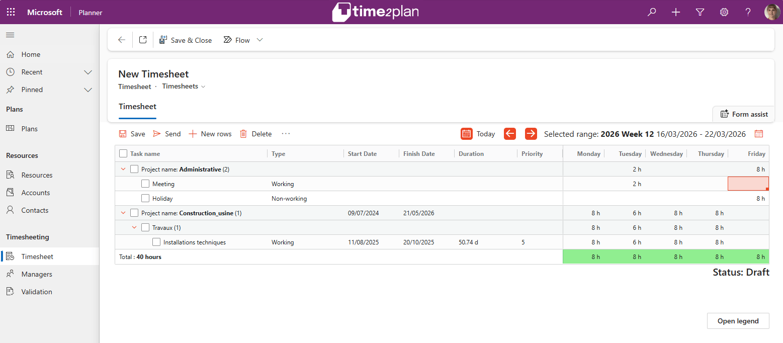 Time2Plan simplifie cette étape en s’intégrant directement à vos outils de planification comme Microsoft Planner ou ASAP. Les utilisateurs retrouvent automatiquement leurs tâches et peuvent déclarer leur temps en quelques clics, avec des données fiables et cohérentes.​