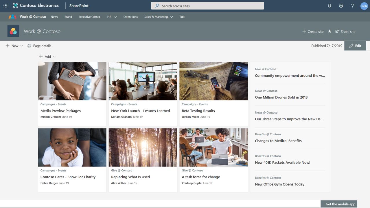 Stocker tous vos documents dans les sites, listes, bibliothèques et dossiers. Ces documents peut être partager avec tous les utilisateurs disposant d’autorisations sur le site mais également avec des personnes extérieures au site.